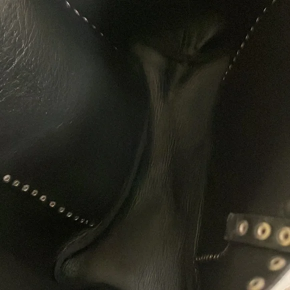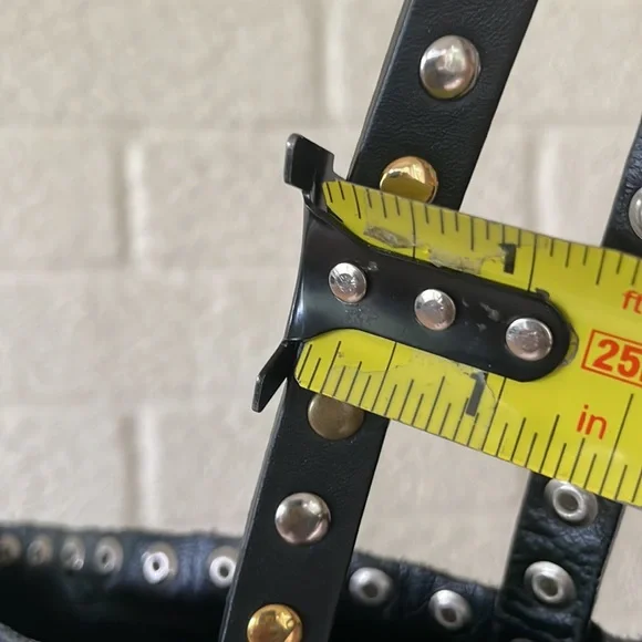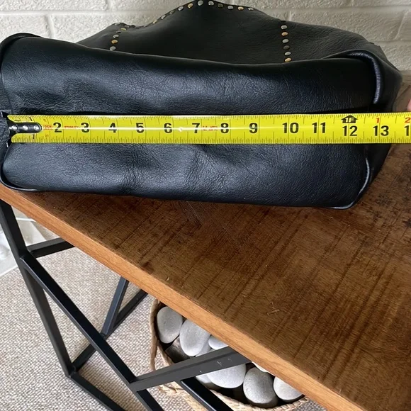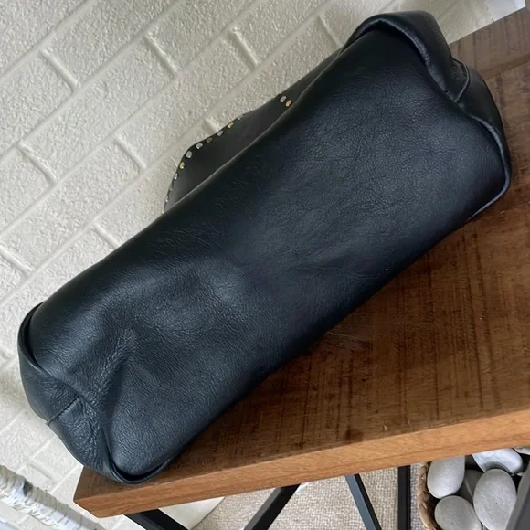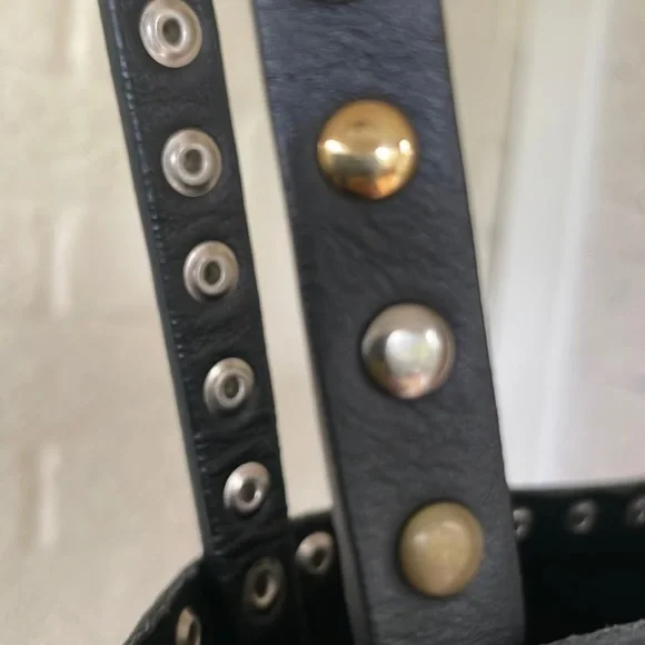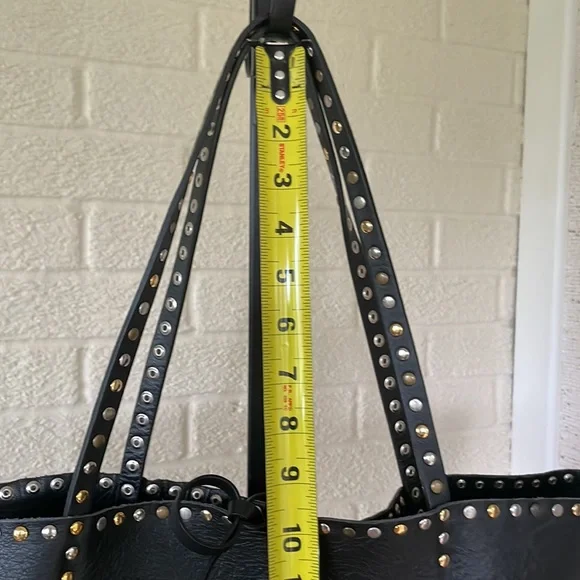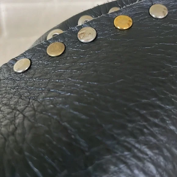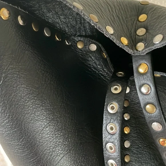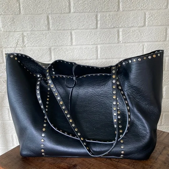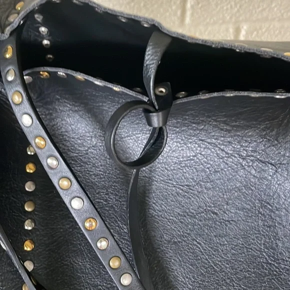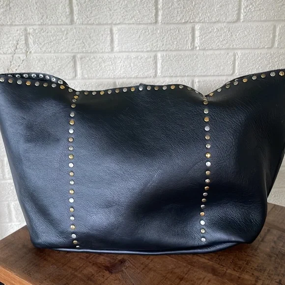 Gorgeous Italian leather tote!!Buttery soft leather and these cool multi-colored studs (silver tone, matte brass and shiny brass / gold tone in an alternating pattern) - give it a total Valentino vibe!Stud pattern on handles, top rim and down the sides (follows the handles)I’OPELLE ITALIA leather tag sewn in on insideNo internal or external pockets - but a purse organizer (purchased separately) will be a great way to keep your things organized!Leather tie and loop closure at top (no magnetic / snap or zipper closure)No internal liningPreloved and in excellent condition! Some normal / general wear (i.e., slight scratching on studs and some minor scratches on leather) but all of this only adds to the character of this beautiful bag!# iopelle lopelle opelle io pelle Italia European international shoulder bag purse carry-all carryall carry all fine fancy cool rad funky moto designer design mixed metal metals metallic shiny casual dressy work office travel sharp timeless classy classic cool fun edge luxe luxurious edgy rock and roll I’Opelle